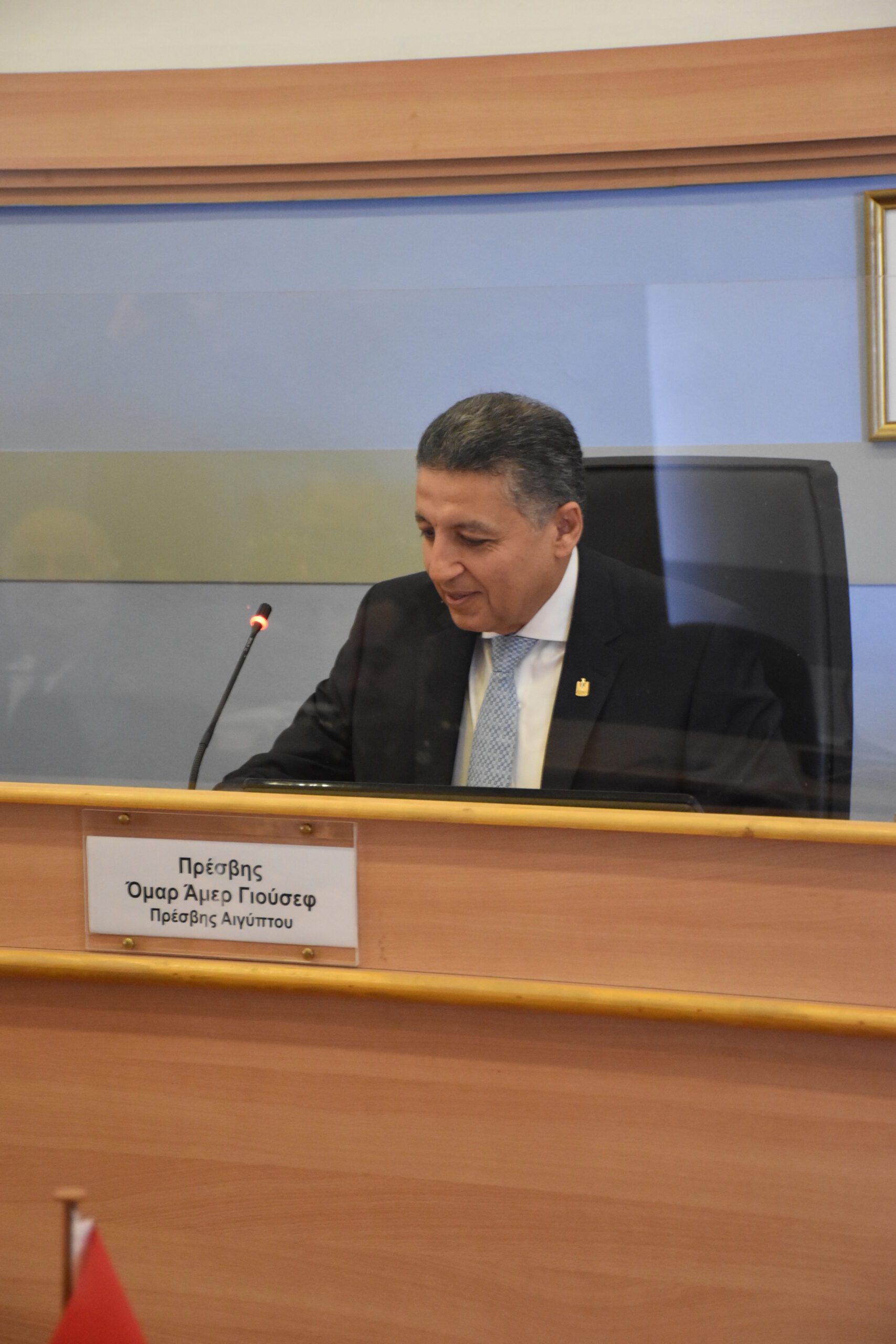 Την Παρασκευή 20 Ιαν 23, επισκέφθηκε τη Σχολή Εθνικής Άμυνας ο Πρέσβης της Αραβικής Δημοκρατίας της Αιγύπτου κ. Ομάρ Άμερ Γιούσεφ, ο οποίος πραγματοποίησε ομιλία στους σπουδαστές της 75ης Ε.Σ. ΦΔΠ με θέμα «Προκλήσεις για την Αίγυπτο στο σύγχρονο γεωστρατηγικό περιβάλλον».