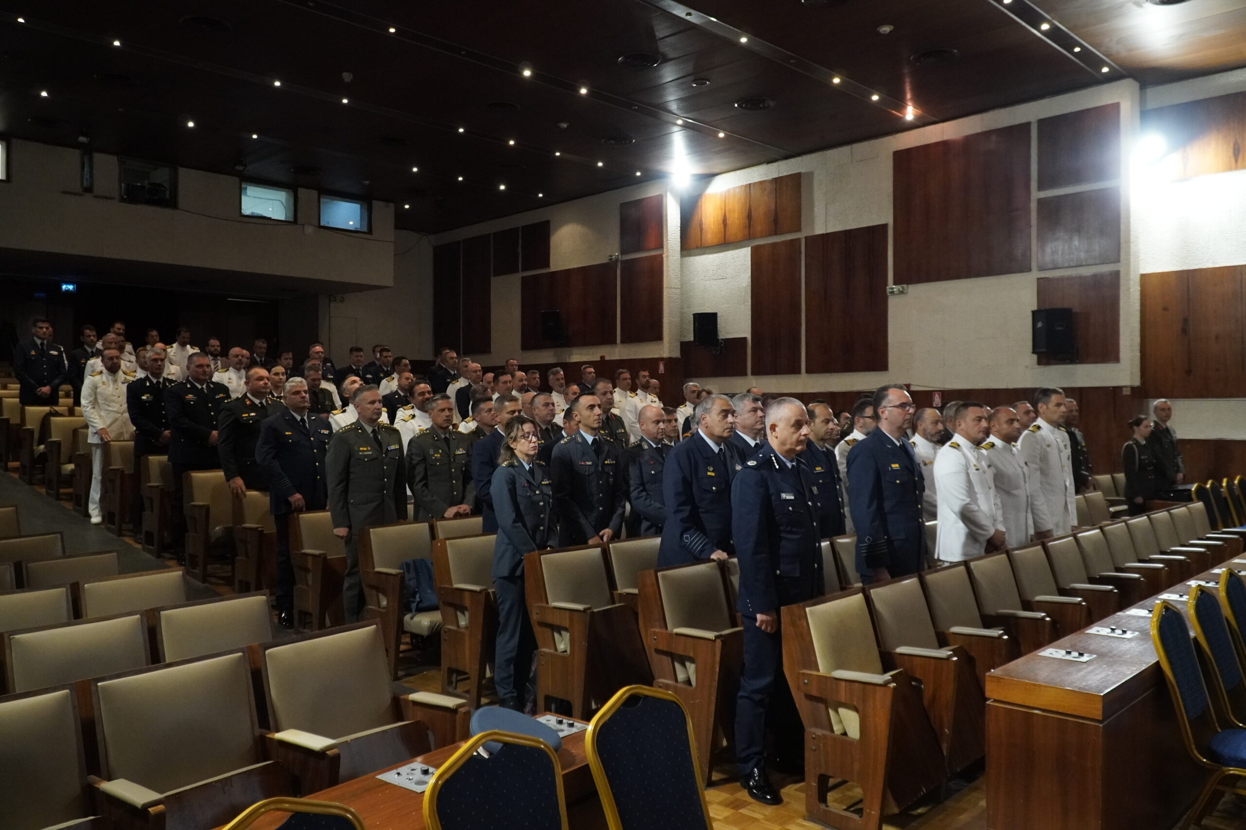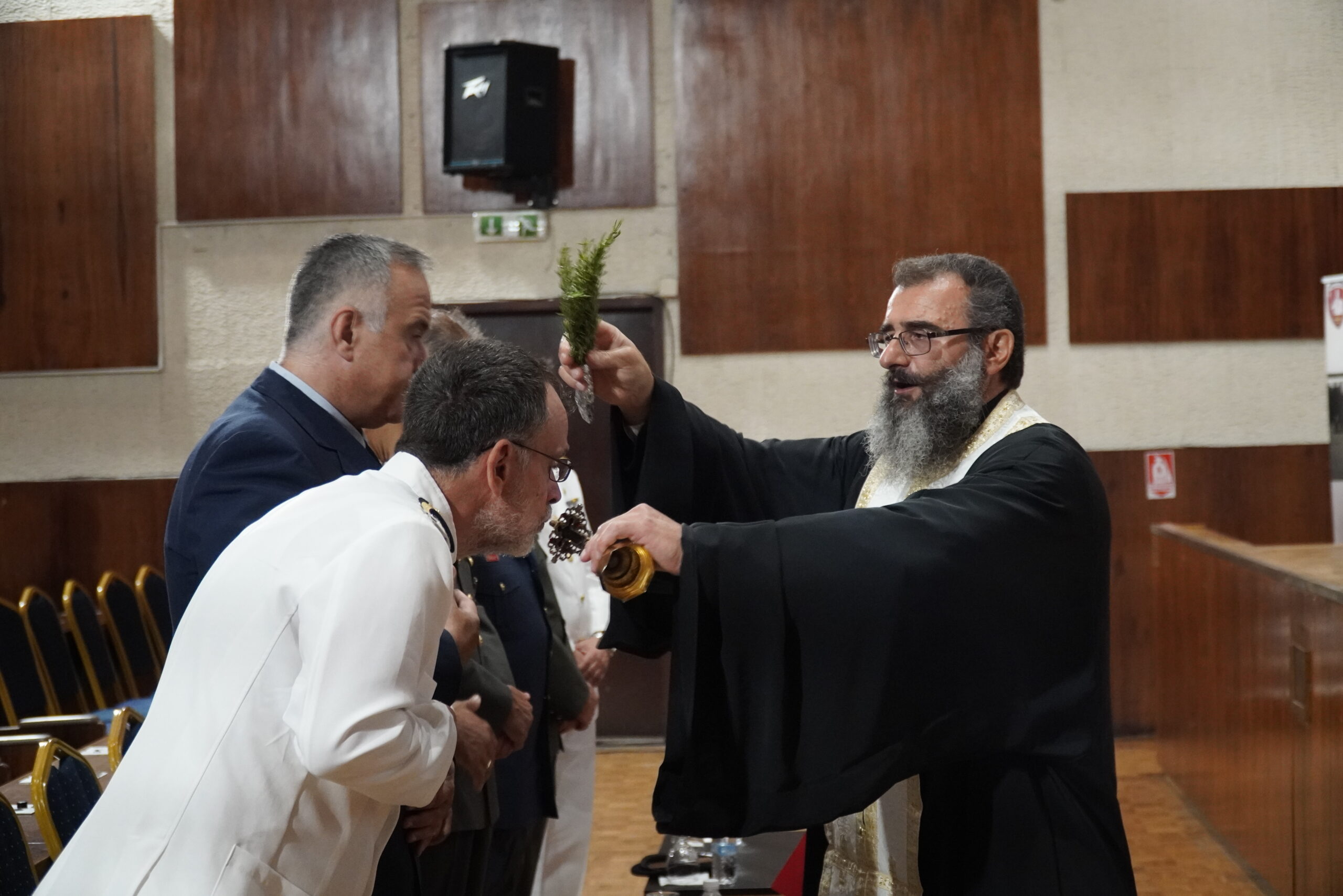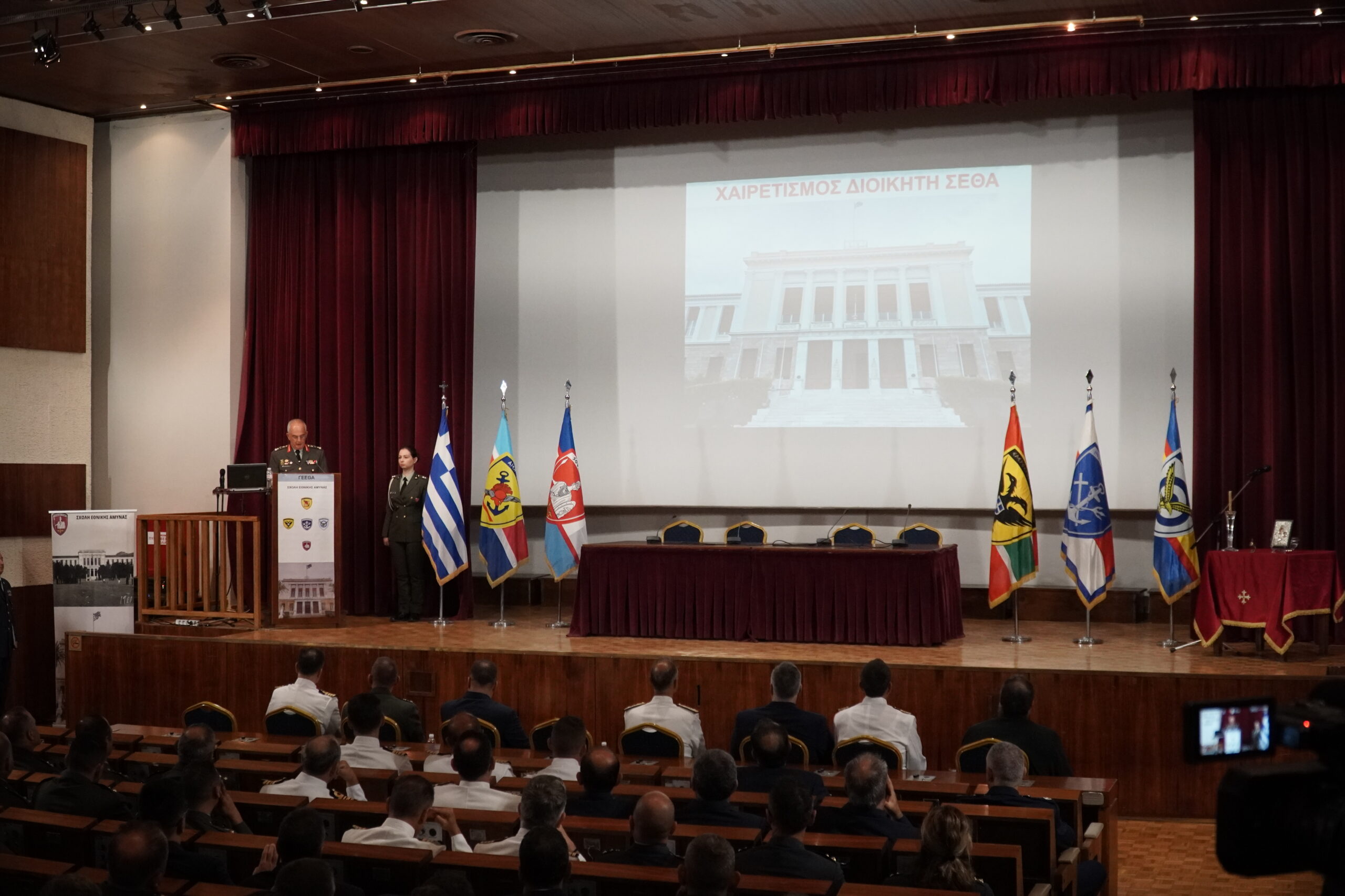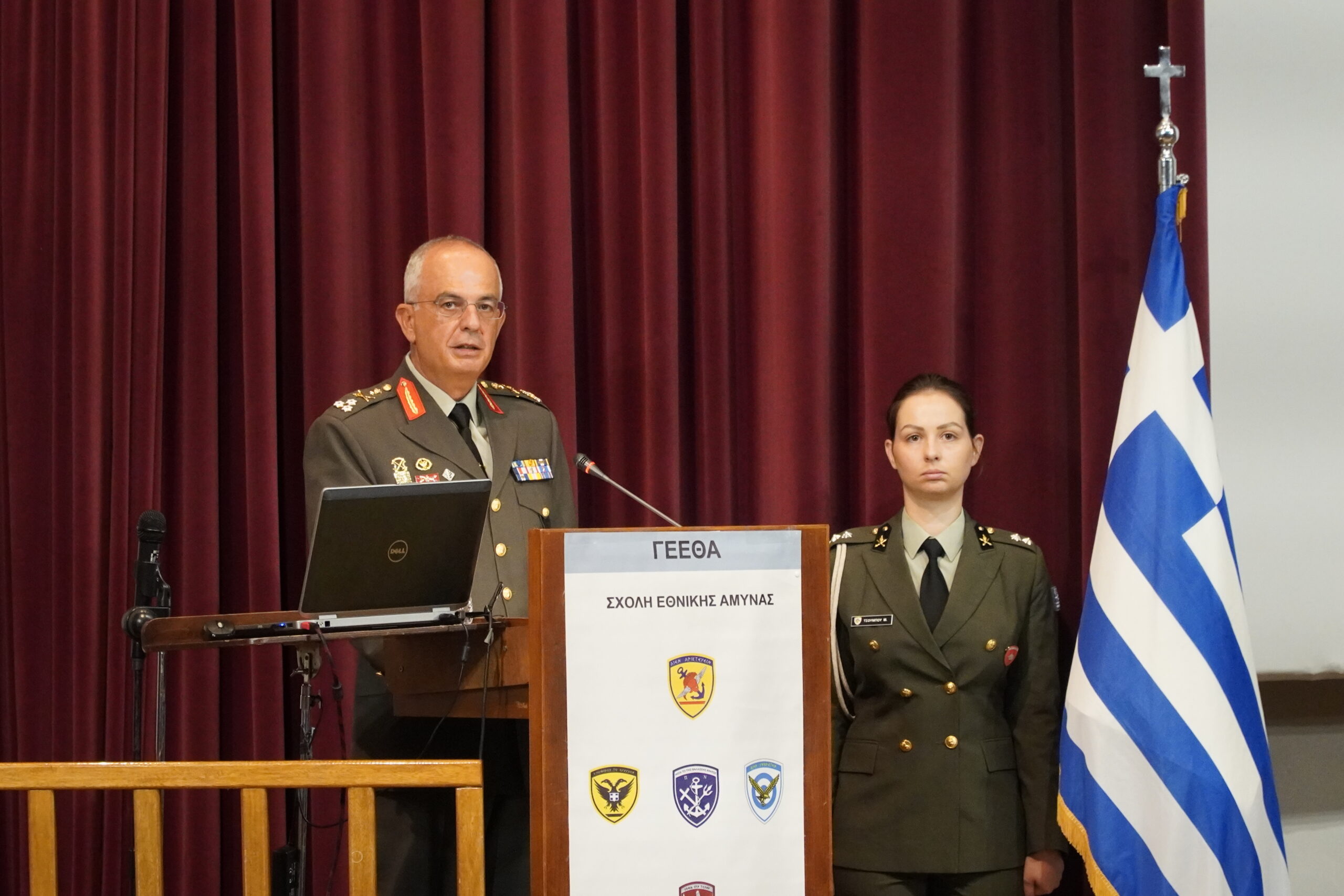 Κατά την τελετή πραγματοποιήθηκε αγιασμός και ακολούθησε χαιρετισμός από τον Διοικητή της Σχολής Εθνικής άμυνας, Αντιστράτηγο Σπυρίδων Αλφαντάκη.