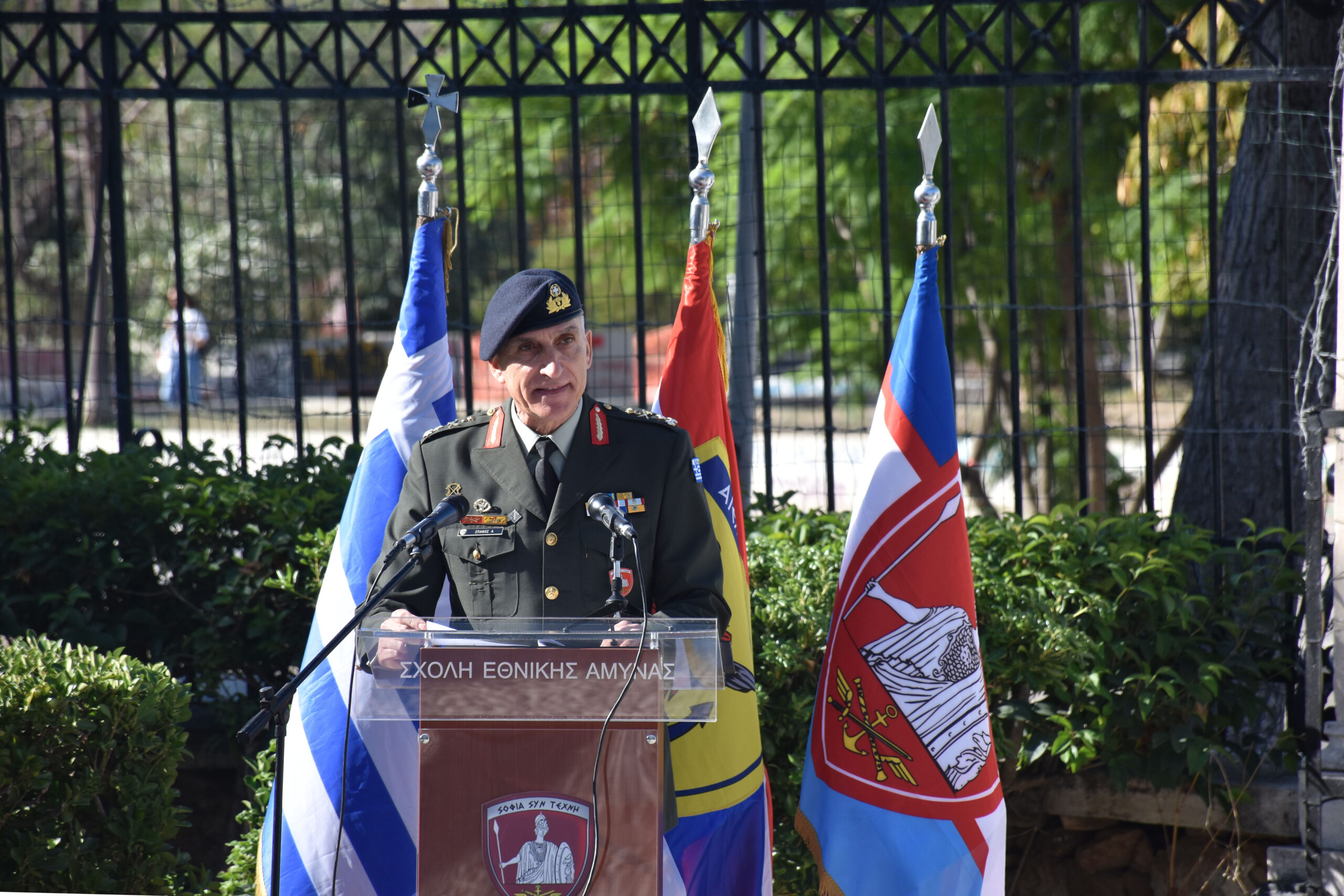Κατά την τελετή πραγματοποιήθηκε αγιασμός και ακολούθησε χαιρετισμός από τον Διοικητή της Σχολής Εθνικής Άμυνας, Αντιστράτηγο Αναστάσιο Α. Σπανό.