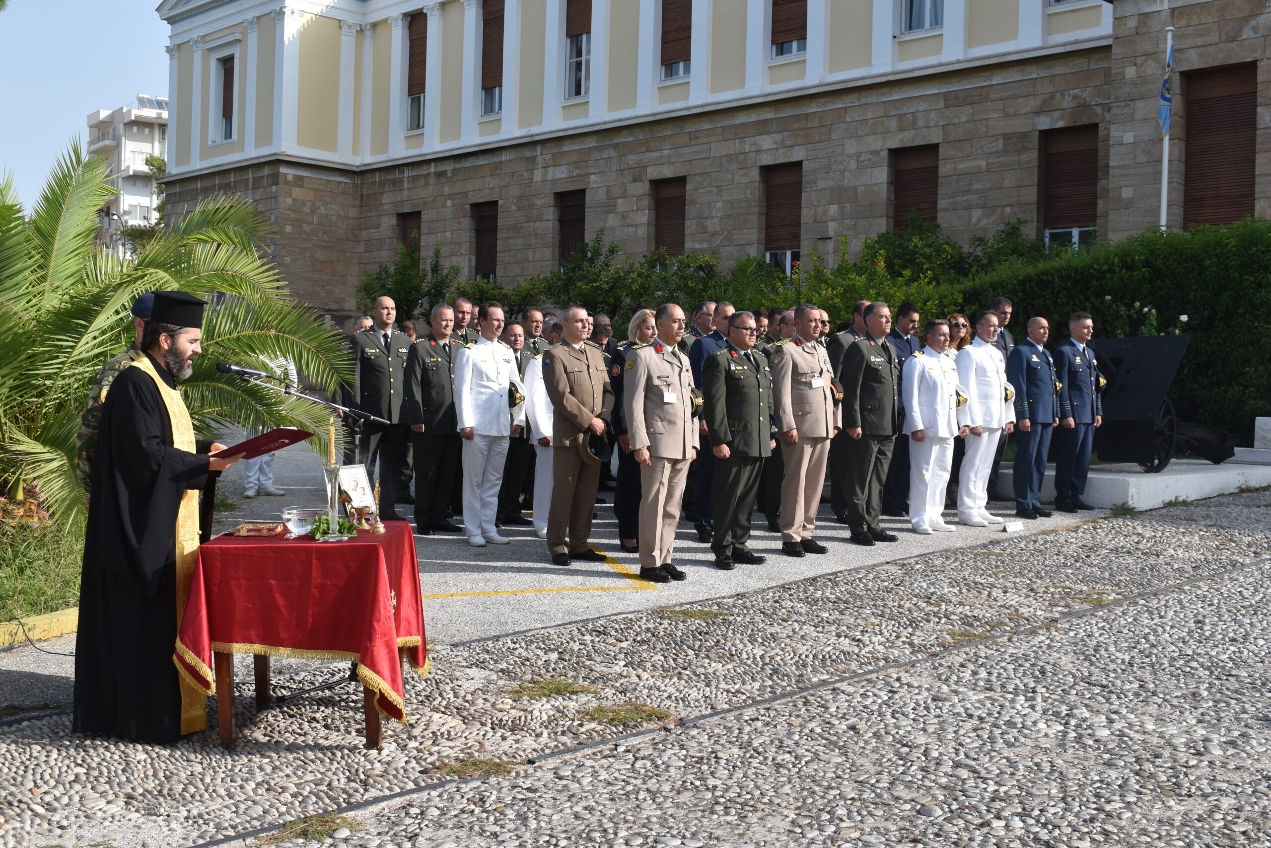 Κατά την τελετή πραγματοποιήθηκε αγιασμός και ακολούθησε χαιρετισμός από τον Διοικητή της Σχολής Εθνικής Άμυνας, Αντιστράτηγο Σπυρίδων Αλφαντάκη.