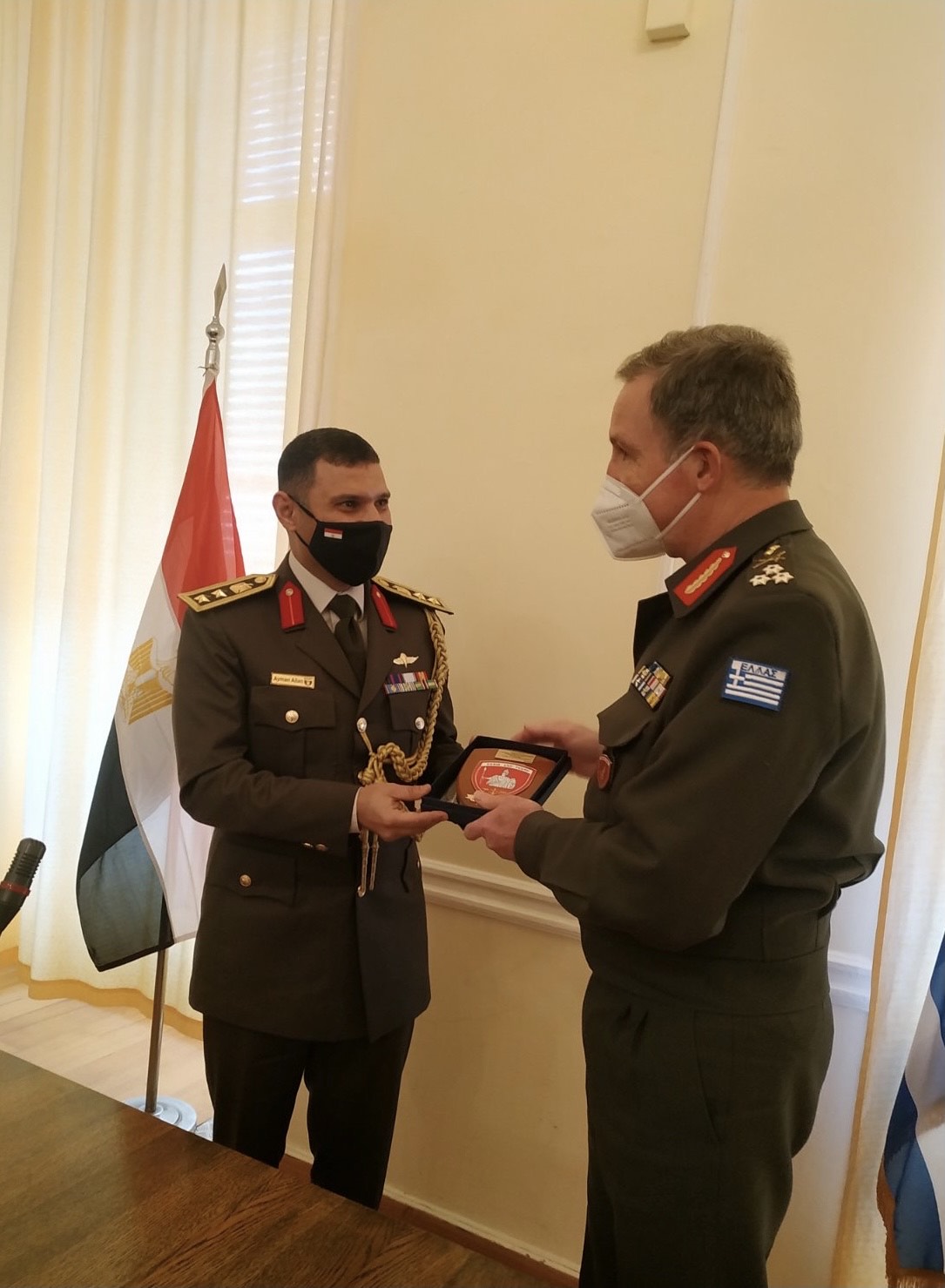 Την Πέμπτη 13 Ιαν 2022 επισκέφθηκε τη ΣΕΘΑ ο ΑΚΑΜ Αιγύπτου COLONEL AYMAN ALIAN MAHMOUD ALIAN συνοδευόμενος από τον Ναυτικό Ακόλουθο της χώρας COMMANDER MOHAMED AMIR ABBASS MAHMOUD στο πλαίσιο εθιμοτυπικής επίσκεψης όπου ενημερώθηκε για την αποστολή της Σχολής και συζητήθηκαν θέματα αμοιβαίας συνεργασίας της ΣΕΘΑ με Ακαδημία NASSER Αιγύπτου, καθώς και θέματα αμοιβαίου ενδιαφέροντος. Επακολούθησε εποικοδομητική συζήτηση.