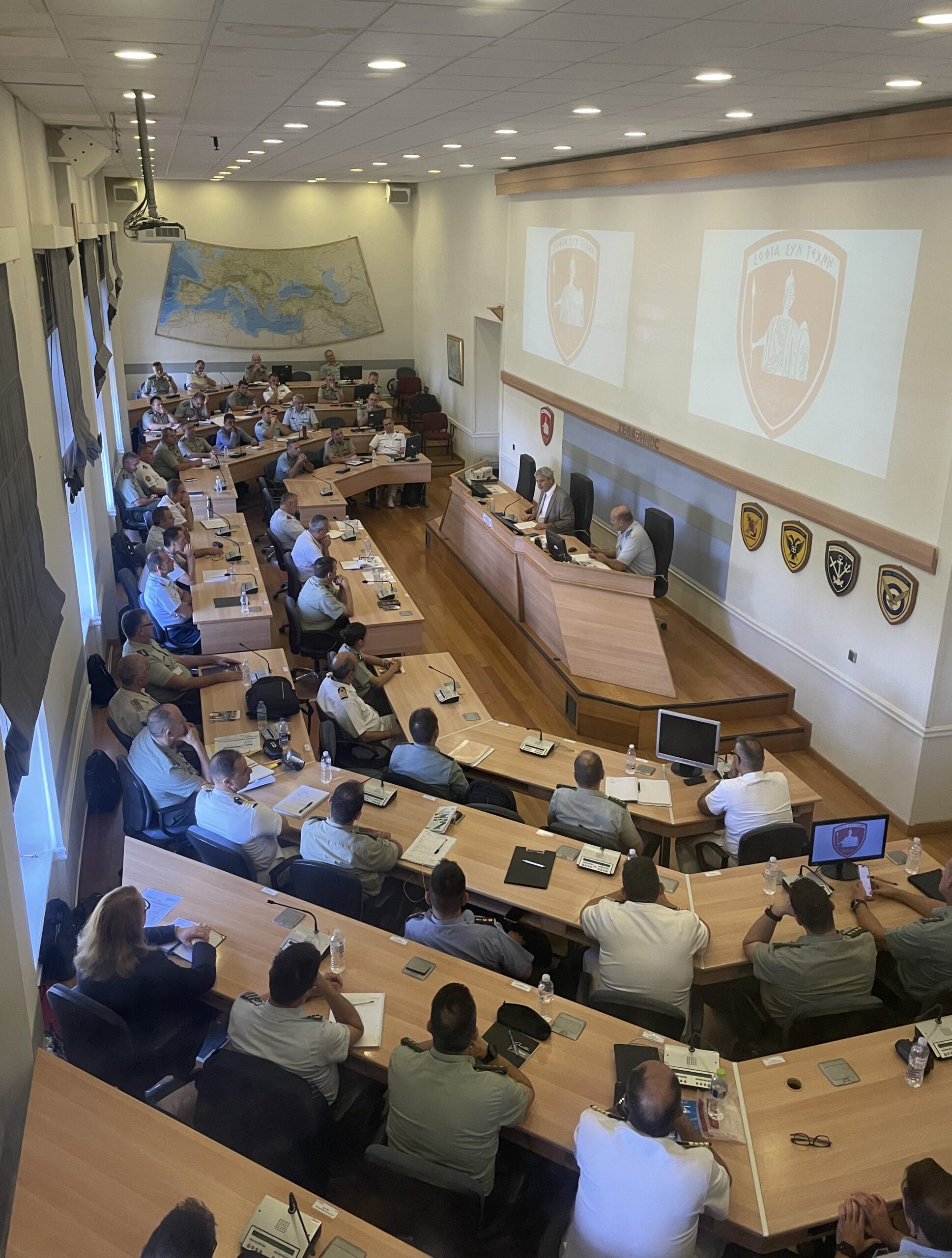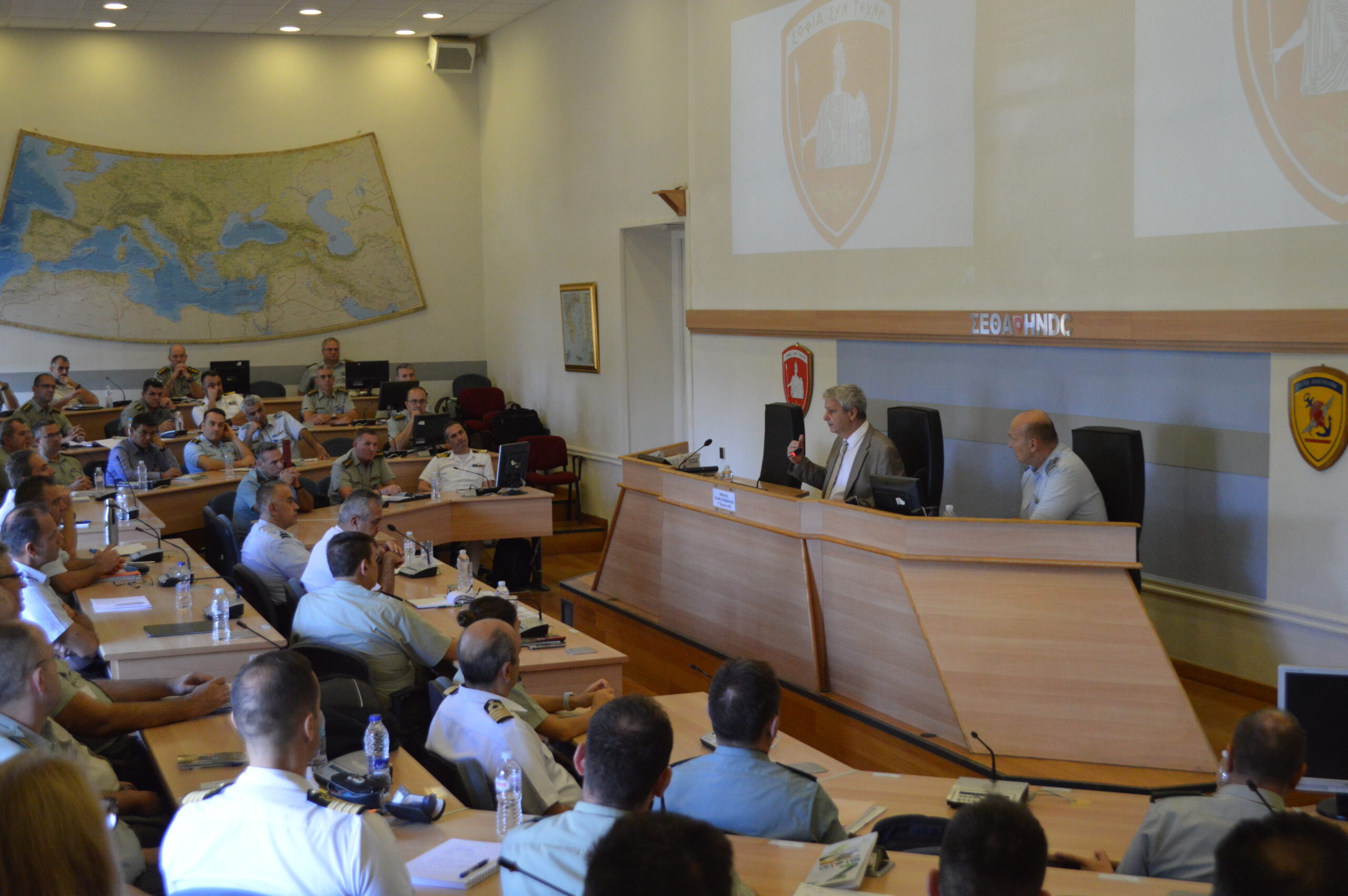 Την Παρασκευή 18 Οκτ 24, ο Καθηγητής Ιστορίας του Εθνικού Καποδιστριακού Πανεπιστημίου Αθηνών και Γενικός Γραμματέας του Ιδρύματος της Βουλής για τον Κοινοβουλευτισμό και τη Δημοκρατία, κ. Ευάνθης Χατζηβασιλείου επισκέφθηκε τη Σχολή Εθνικής Άμυνας και πραγματοποίησε διάλεξη στους σπουδαστές της 77ης Eκπαιδευτικής Σειράς Φοίτησης με θέμα «Εθνική και Περιφερειακή Γεωγραφία της Ελλάδας στον 20ο αιώνα και η επίπτωσή της στην πολιτική εθνικής ασφάλειας».