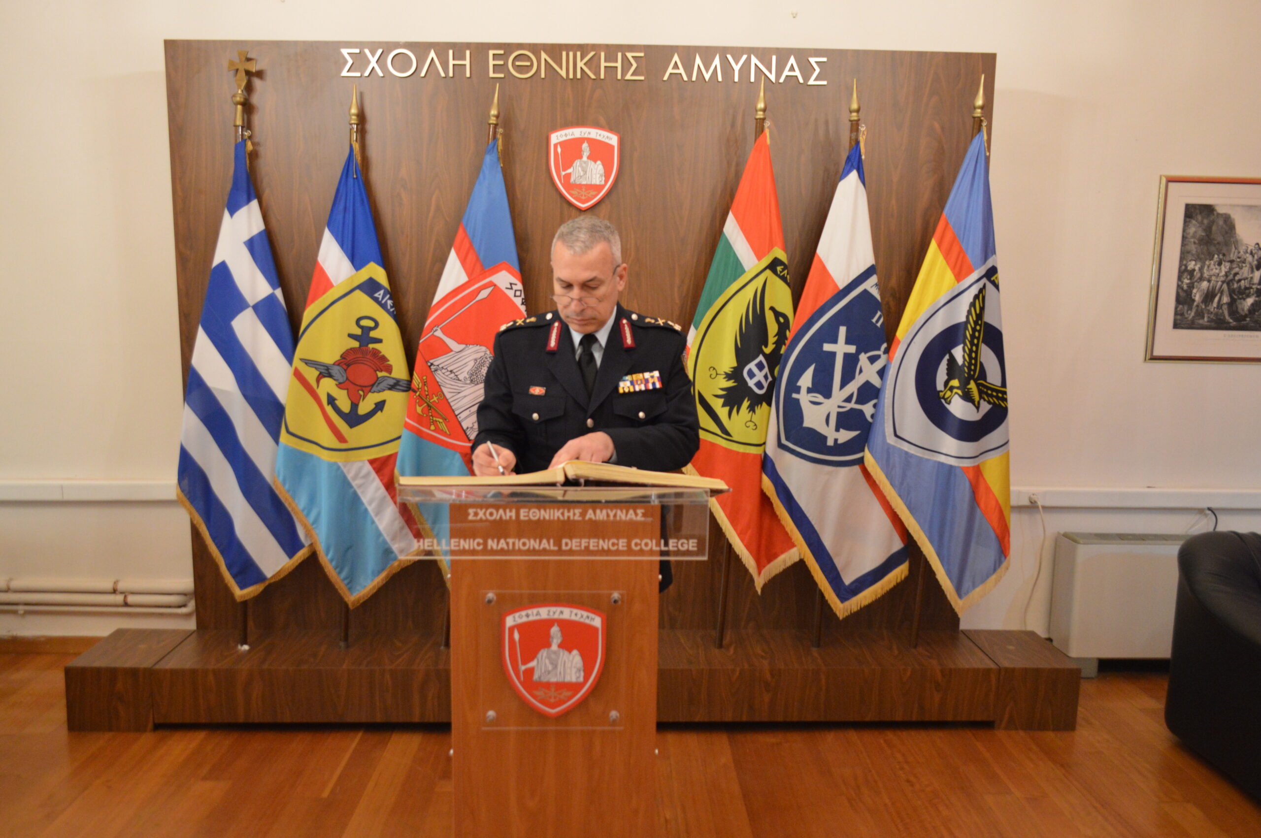 Την Τετάρτη 18 Μαρτίου 2026 επισκέφθηκε τη Σχολή Εθνικής Άμυνας ο Αρχηγός της Ελληνικής Αστυνομίας, Αντιστράτηγος Δημήτριος Μάλλιος, ο οποίος πραγματοποίησε ομιλία στους σπουδαστές της 78ης Εκπαιδευτικής Σειράς Φοίτησης με θέμα «Παράνομη Μετανάστευση και Προκλήσεις Εσωτερικής Ασφάλειας».