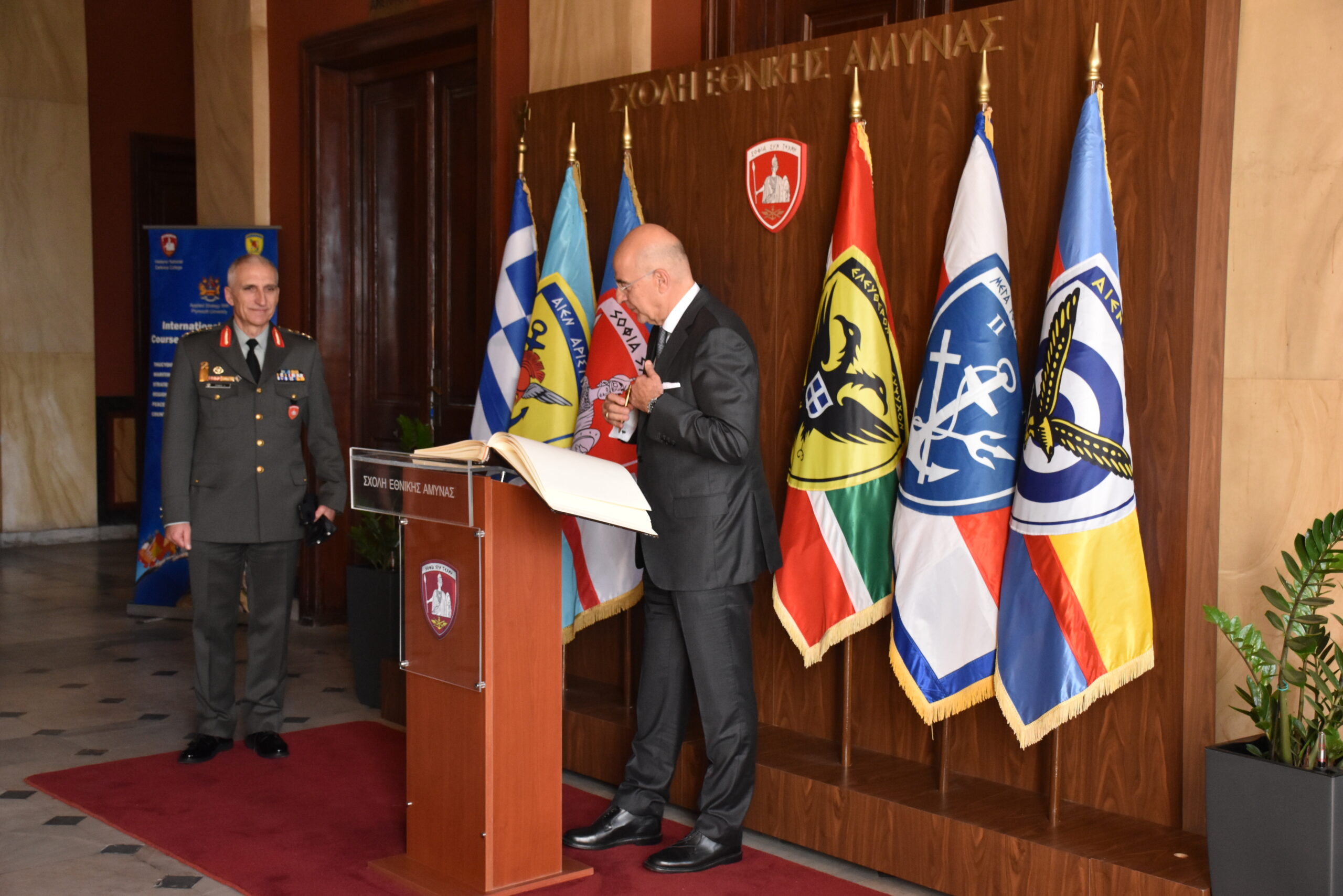 Την Τετάρτη 23 Νοε 22, επισκέφθηκε τη Σχολή Εθνικής Άμυνας ο Υπουργός Εξωτερικών κ. Νικόλαος Δένδιας, ο οποίος πραγματοποίησε ομιλία στους σπουδαστές της 75ης Ε.Σ. ΦΔΠ με θέμα «Προκλήσεις, Προοπτικές και Στρατηγικοί Στόχοι του Υπουργείου Εξωτερικών».