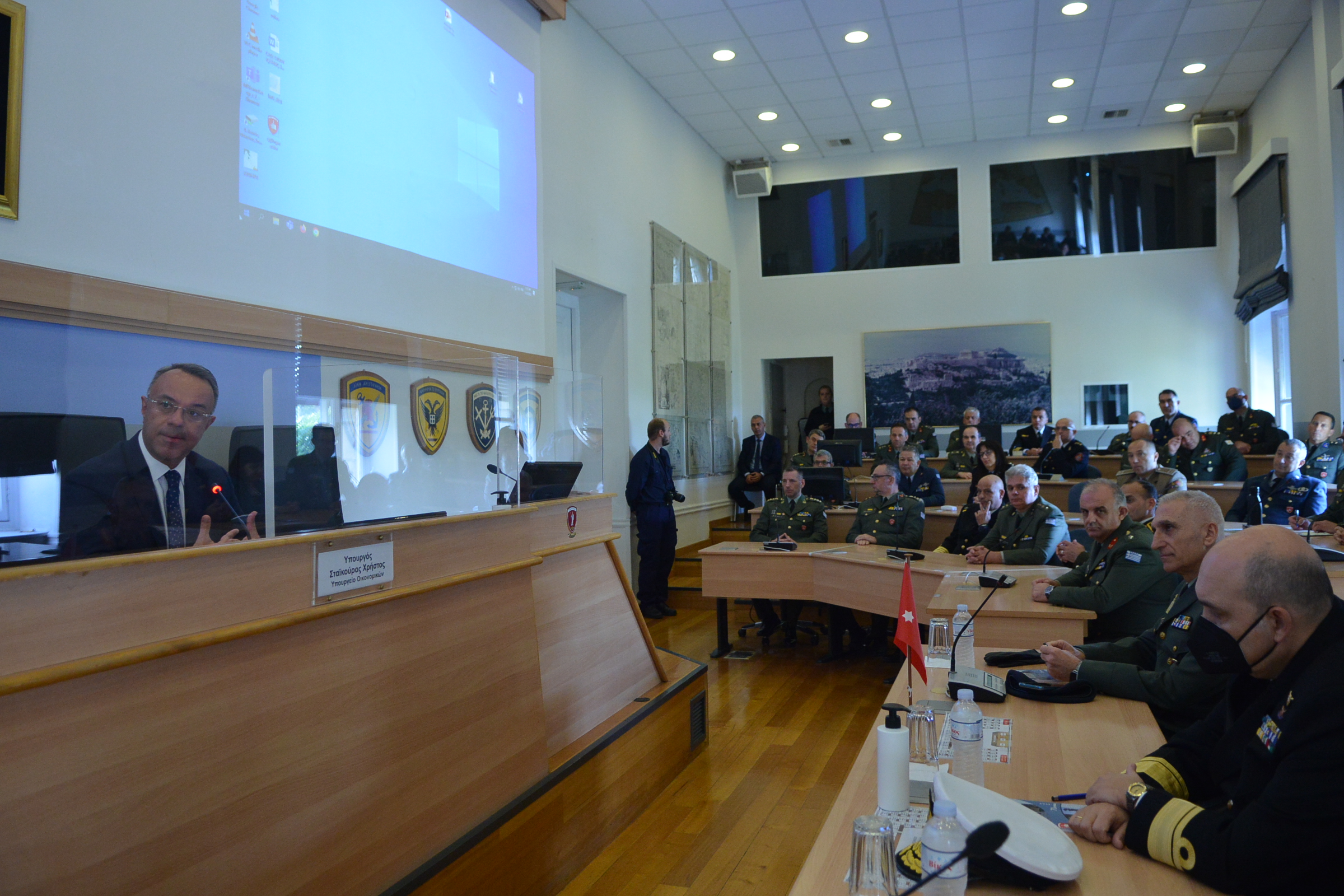 Την Τρίτη 15 Νοε 22, επισκέφθηκε τη Σχολή Εθνικής Άμυνας ο Υπουργός Οικονομικών κ. Χρήστος Σταϊκούρας, ο οποίος πραγματοποίησε ομιλία στους σπουδαστές της 75ης Ε.Σ. ΦΔΠ με θέμα «Προκλήσεις, Προοπτικές και Στρατηγικοί Στόχοι του Υπουργείου Οικονομικών.