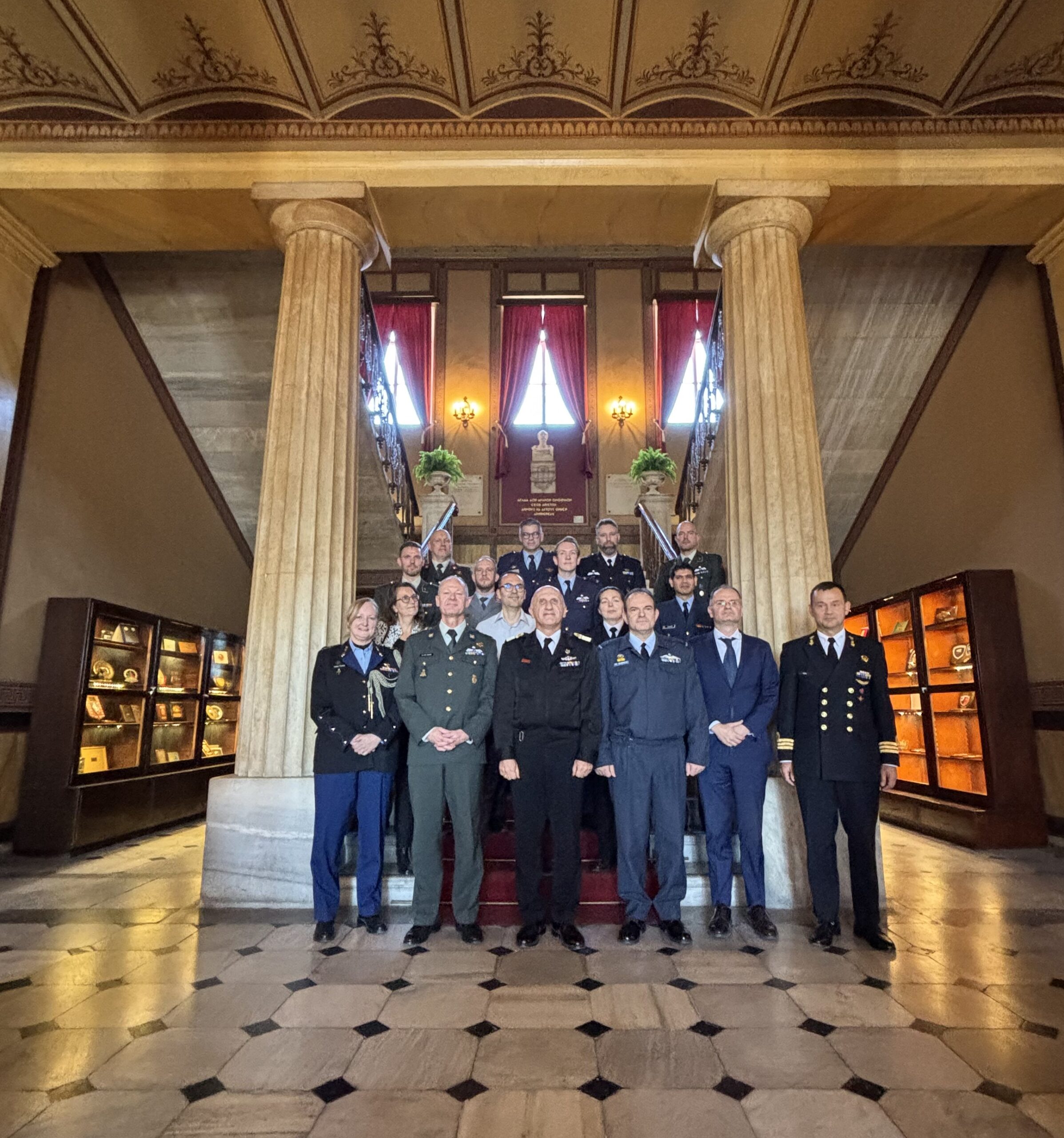 Τη Δευτέρα 24 Νοεμβρίου 2025, αντιπροσωπεία σπουδαστών του «Advanced Command and Staff Course» του Netherlands Defence College (NDC) πραγματοποίησε επίσκεψη στη Σχολή Εθνικής Άμυνας, όπου ενημερώθηκε για την οργάνωση, αποστολή και το εκπαιδευτικό έργο της Σχολής ενώ περιηγήθηκε τους χώρους της.