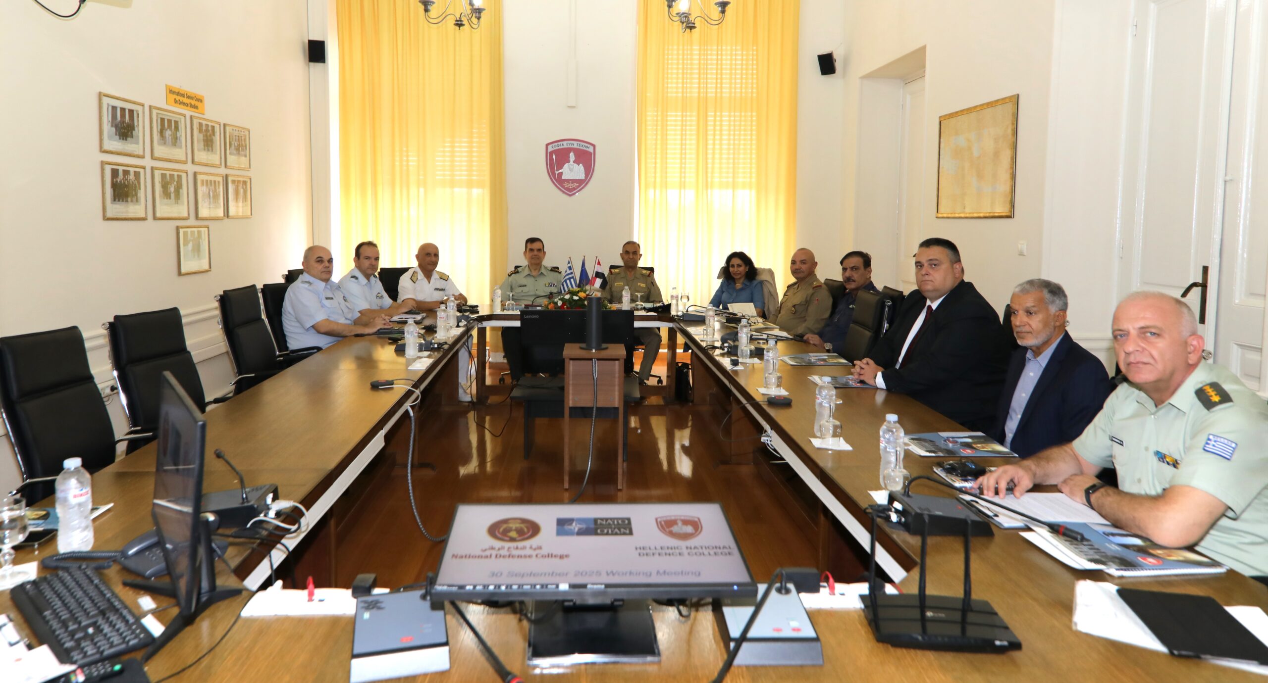 Την Τρίτη 30 Σεπτεμβρίου 2025, κατόπιν αιτήματος του NATO Defence Education Enhancement Programme (NATO DEEP), αντιπροσωπεία του Κολλεγίου Εθνικής Άμυνας του Ιράκ (INDC), με επικεφαλής τον Αντιστράτηγο Hatem Al Obaidi, συνοδευόμενη από επιτελικά στελέχη της NATO Mission in Iraq (NMI), πραγματοποίησε επίσκεψη στη Σχολή Εθνικής Άμυνας, όπου ενημερώθηκε για την οργάνωση, αποστολή και το εκπαιδευτικό έργο της Σχολής καθώς και ανταλλάγησαν απόψεις για τον τρόπο υλοποίησης των ακαδημαϊκών προγραμμάτων και τη μεταφορά τεχνογνωσίας της Σχολής.