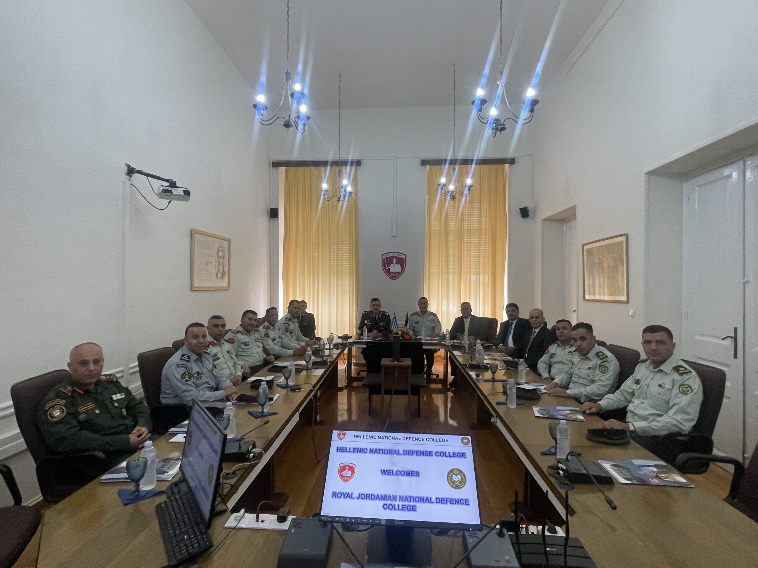 Τη Δευτέρα 22 Απριλίου 2024, το Royal Jordanian National Defence College (RJNDC) των Ε.Δ. της Ιορδανίας πραγματοποίησε εκπαιδευτική επίσκεψη στη Σχολή Εθνικής Άμυνας. Οι σπουδαστές του είχαν τη δυνατότητα να ενημερωθούν για την αποστολή και τις δραστηριότητες της Σχολής, καθώς επίσης και να περιηγηθούν στους χώρους της.