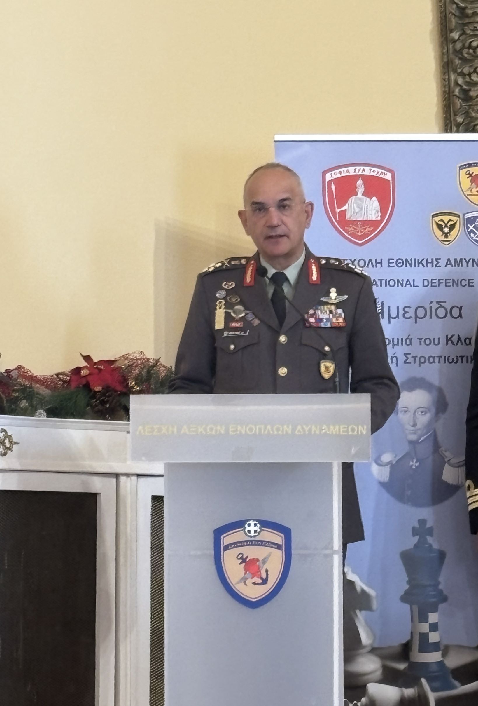 Κεντρικός ομιλητής της Ημερίδας ήταν ο Υποστράτηγος Μιχαήλ Πλουμής, Διοικητής της ΑΔΙΣΠΟ με θέμα «Κλαούζεβιτς και Σουν Τσου»