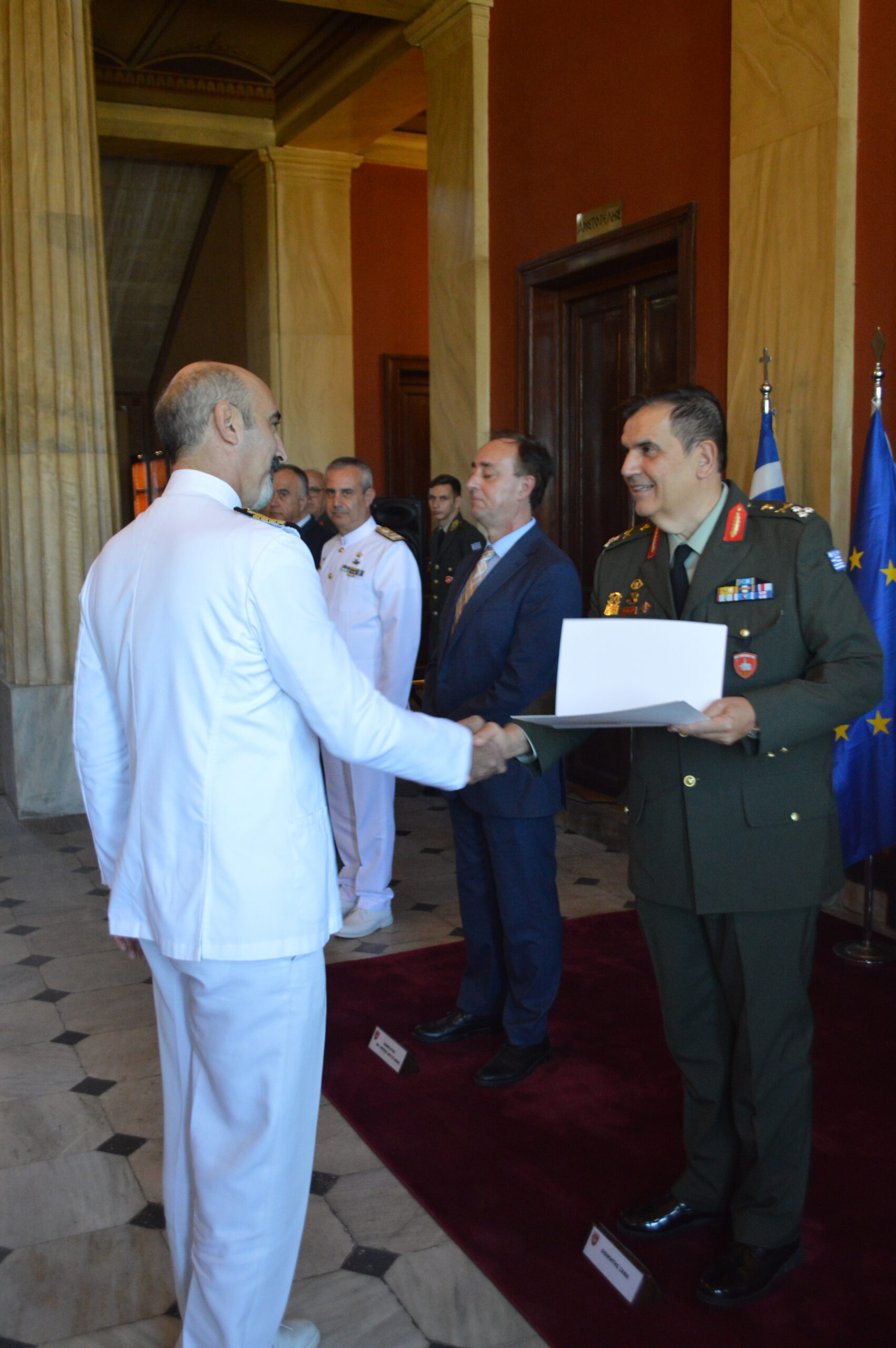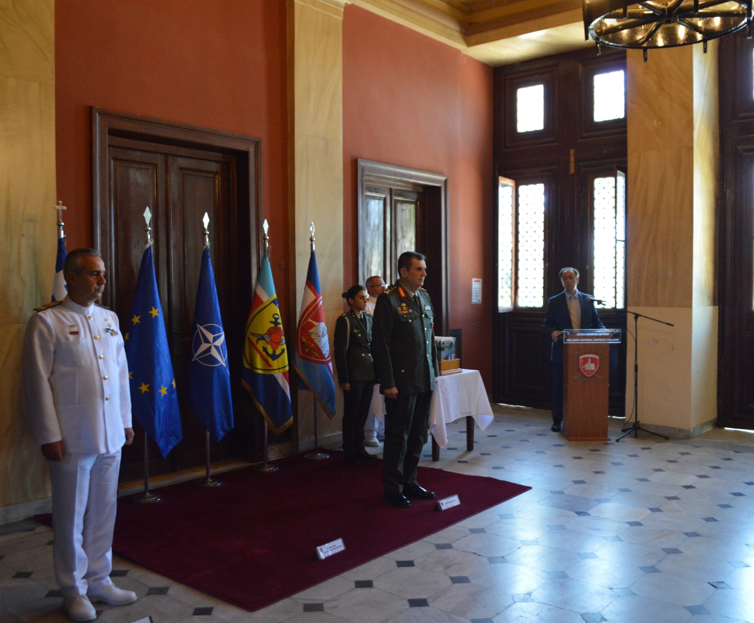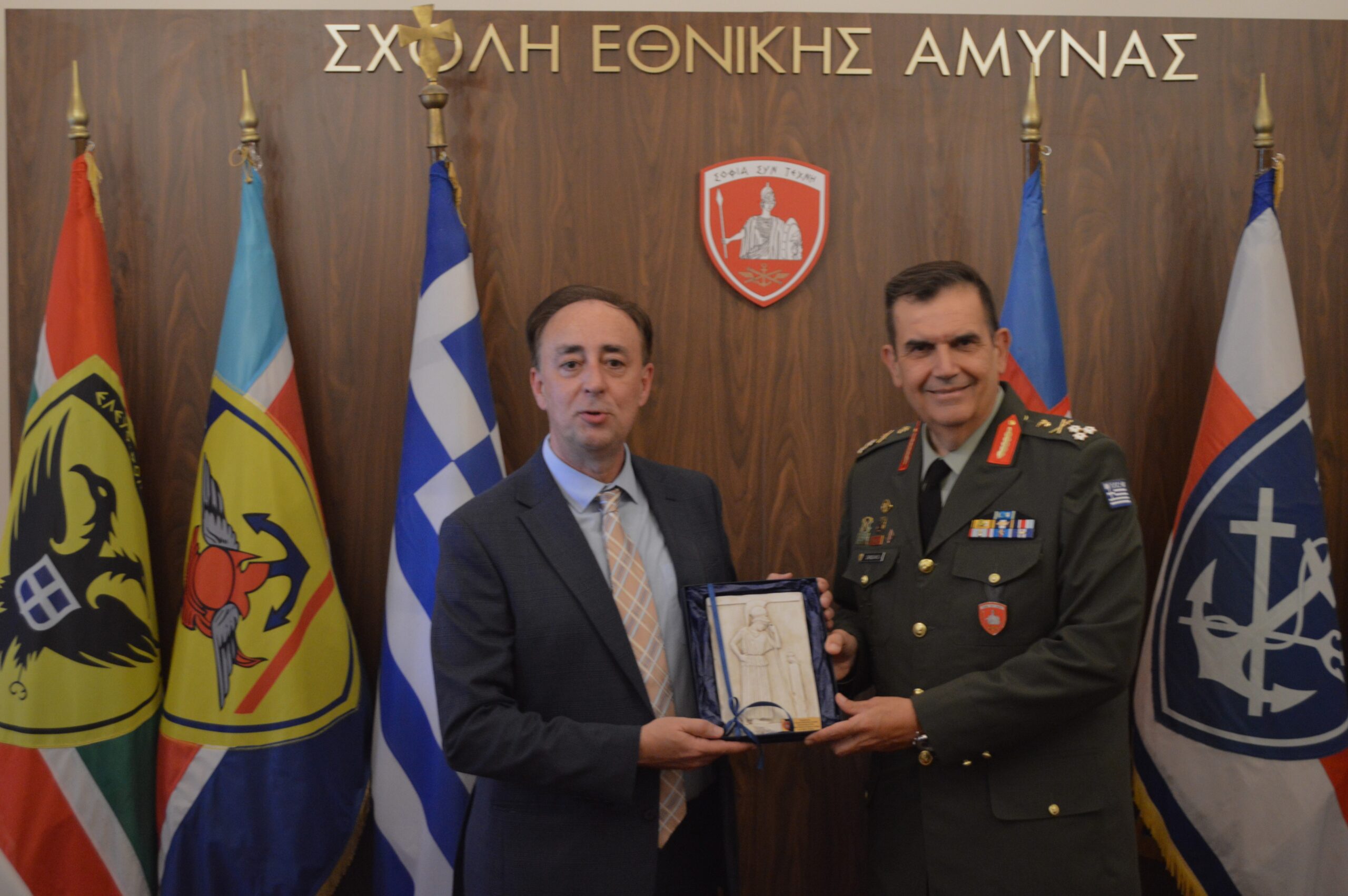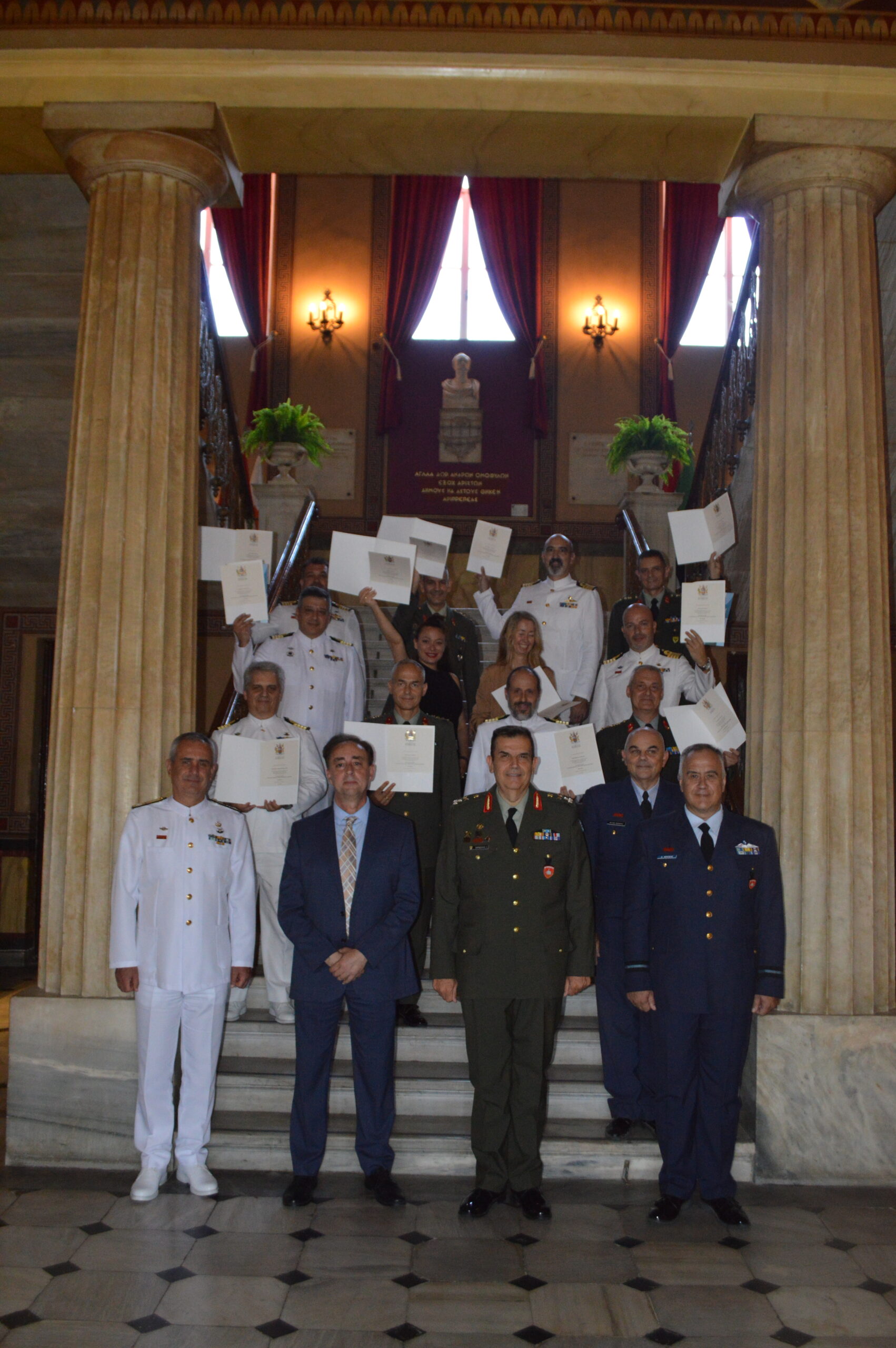 Στο πλαίσιο της 15ετούς επιτυχημένης συνεργασίας της Σχολής Εθνικής Άμυνας με το Πανεπιστήμιο Πλύμουθ του Ηνωμένου Βασιλείου, την Παρασκευή 13 Σεπτεμβρίου 24 απονεμήθηκαν πτυχία από το Διοικητή της ΣΕΘΑ, Αντιστράτηγο Σαρδέλλη Αθανάσιο και τον Καθηγητή Στρατηγικών Σπουδών και Διευθυντή του Κέντρου Θαλάσσιας Ισχύος και Στρατηγικής του Πανεπιστημίου του Πλύμουθ, κ. Μουστάκη Φώτιο, σε Αξιωματικούς των Ενόπλων Δυνάμεων και Πολιτικό Προσωπικό, που φοίτησαν στο Πρόγραμμα Μεταπτυχιακών Σπουδών (ΠΜΣ) «Εφαρμοσμένη Στρατηγική και Διεθνής Ασφάλεια», το οποίο συνδιοργανώθηκε από τη Σχολή Εθνικής Άμυνας και το Πανεπιστήμιο.