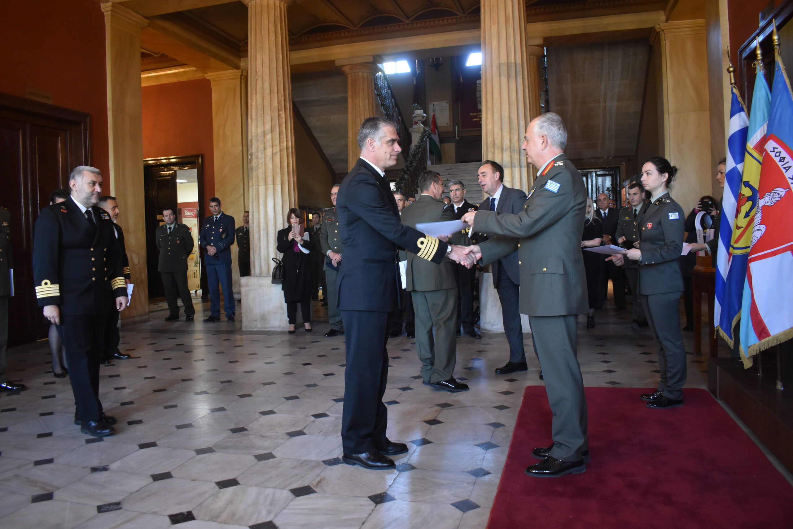 Την Πέμπτη 30 Νοεμβρίου 2023 στη Σχολή Εθνικής Άμυνας (ΣΕΘΑ) πραγματοποιήθηκε τελετή απονομής πτυχίων σε 14 Αξιωματικούς των Ενόπλων Δυνάμεων και των Σωμάτων Ασφαλείας (10 ΓΕΣ, 3 ΠΝ και 1 ΛΣ/ΕΛ.ΑΚΤ), του Προγράμματος Μεταπτυχιακών Σπουδών (ΠΜΣ) «Εφαρμοσμένη Στρατηγική και Διεθνής Ασφάλεια» του Βρετανικού Πανεπιστημίου Plymouth, η οποία συνδιοργανώθηκε από τη Σχολή Εθνικής Άμυνας και το Πανεπιστήμιο του Plymouth.