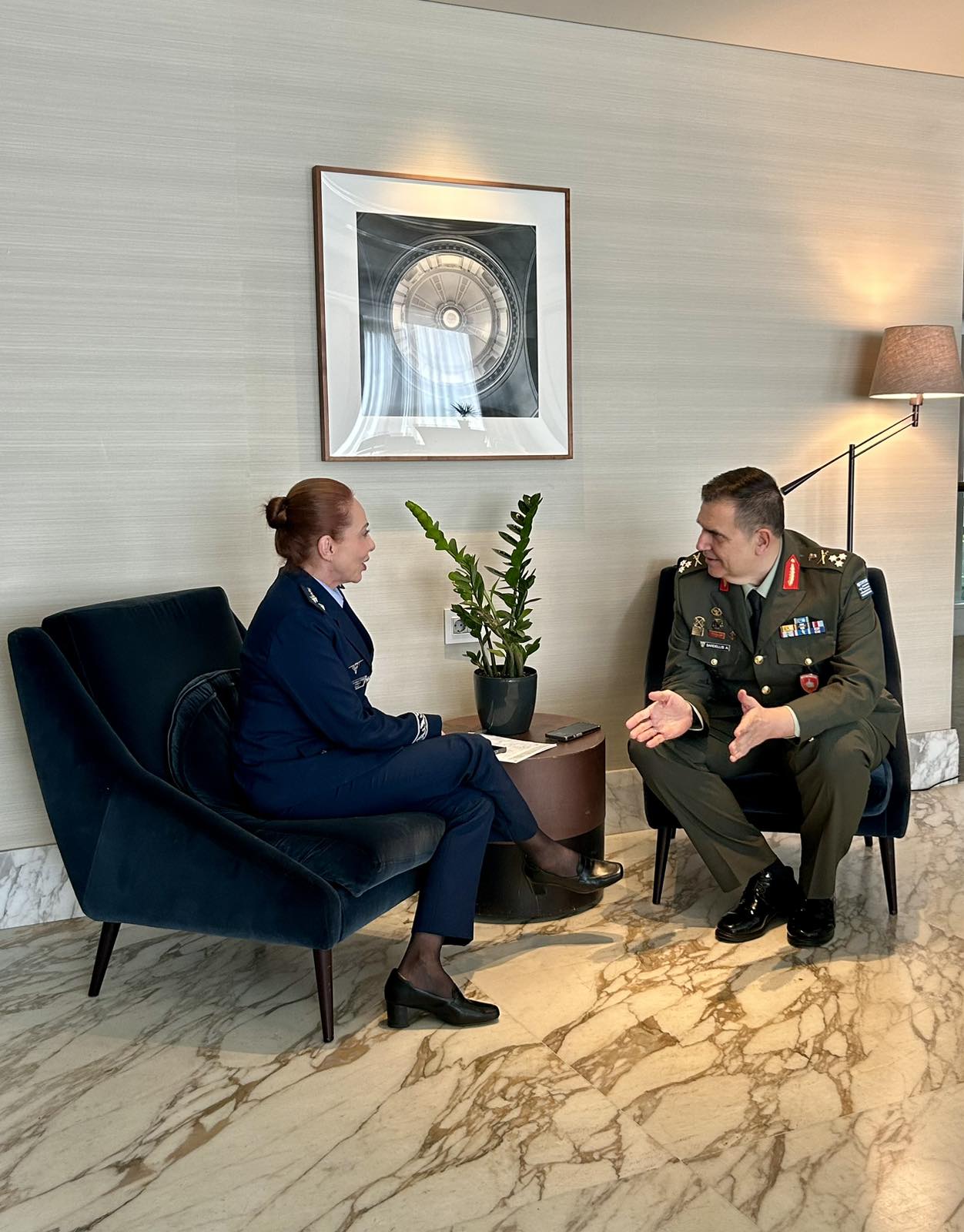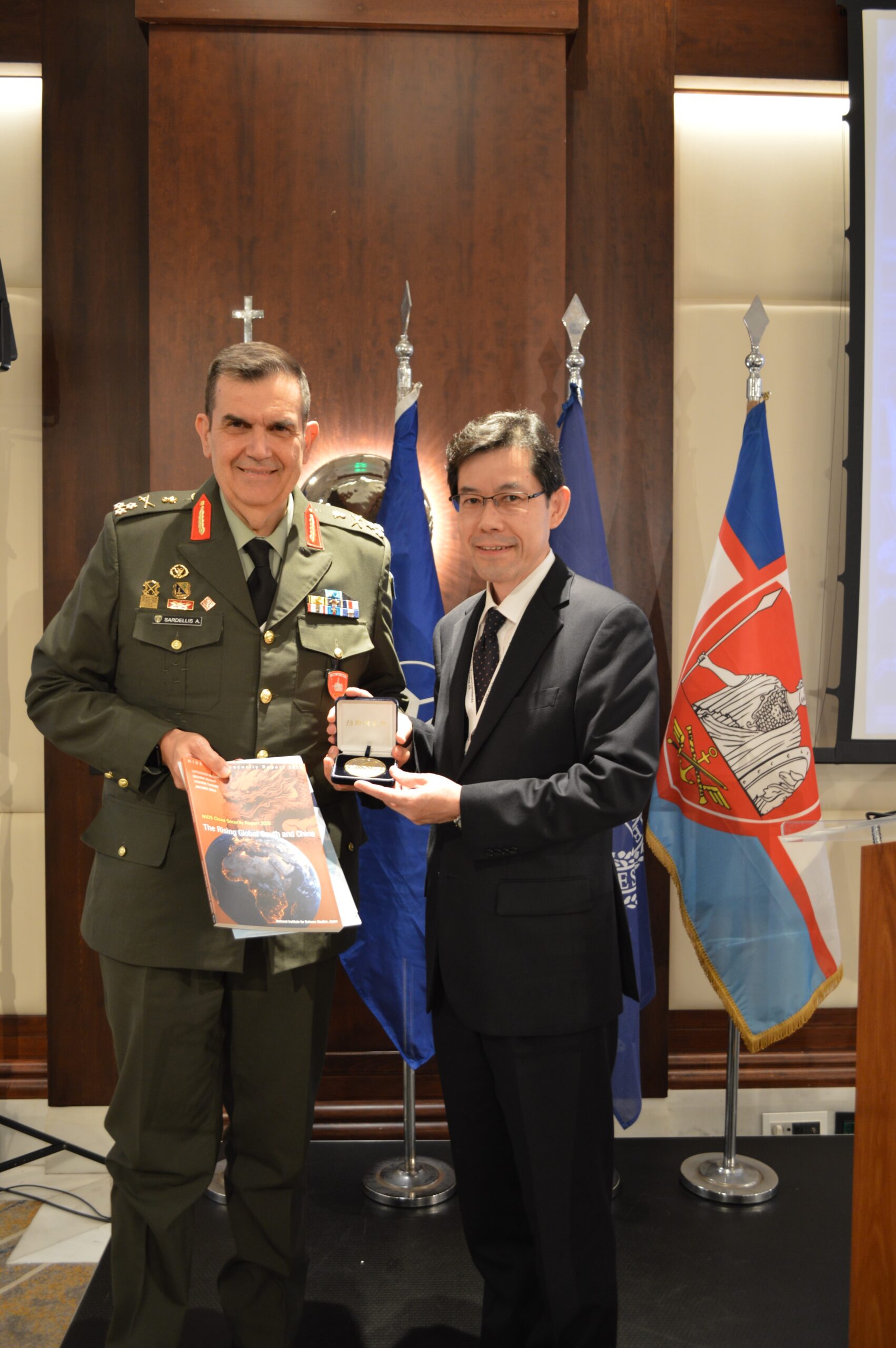 At the opening of the Conference, the Chief of the Hellenic National Defence General Staff, General Dimitrios Houpis, addressed the participants and was honoured with the “Distinguished Ancien” award by the Commander of the NATO Defence College (NDC) Lieutenant General Max A.L.T. Nielsen.