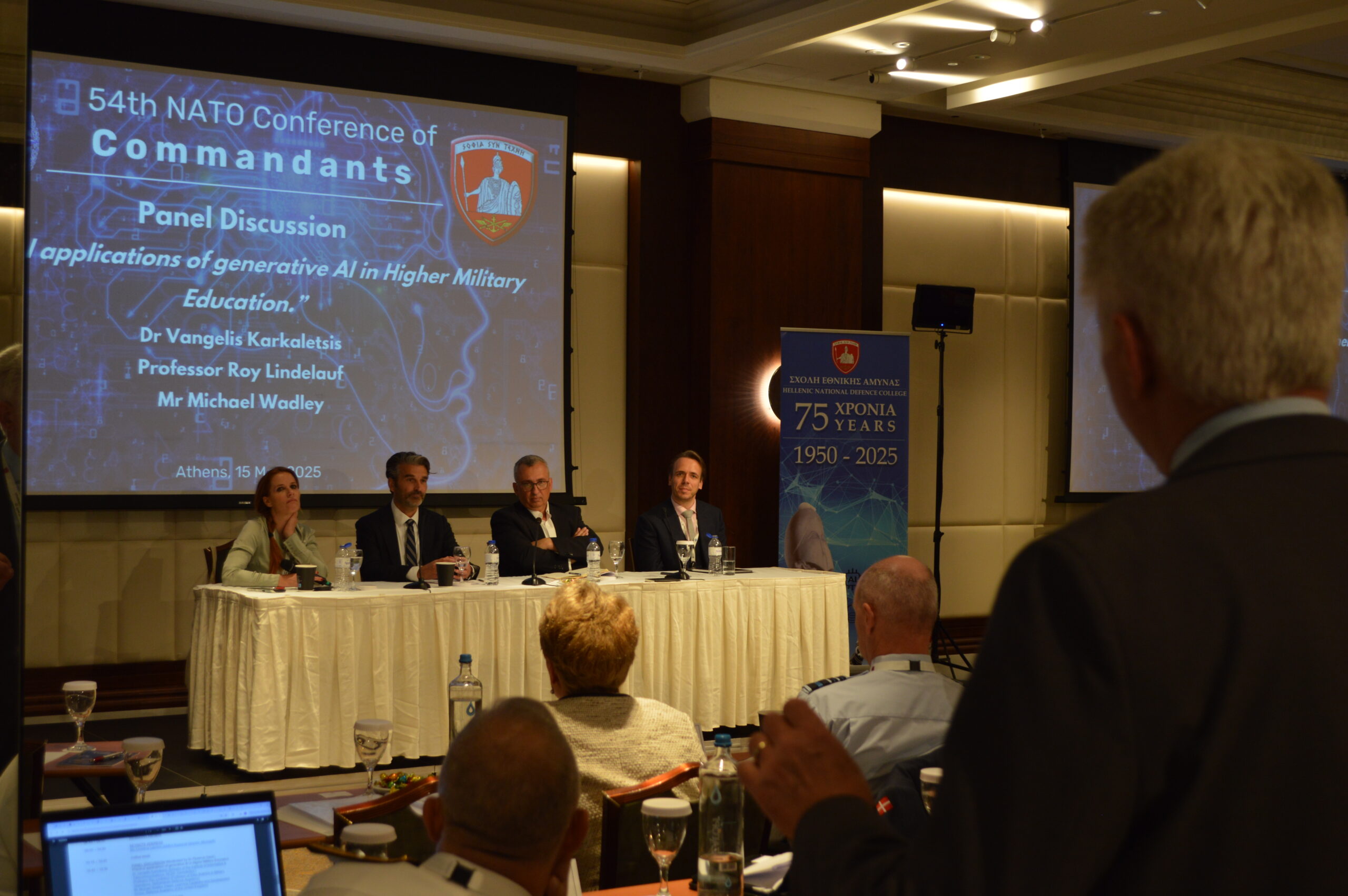 b. Panel Discussions with the participation of distinguished speakers from abroad and Greece, including lecturers of HNDC, Dr Georgios Nounesis, Director and Chairman of the Board of the National Centre for Scientific Research “Demokritos” and Dr Evangelos Karkaletsis, Director of the Institute of Informatics and Telecommunications (ITT) at “Demokritos”. Discussion topics were: