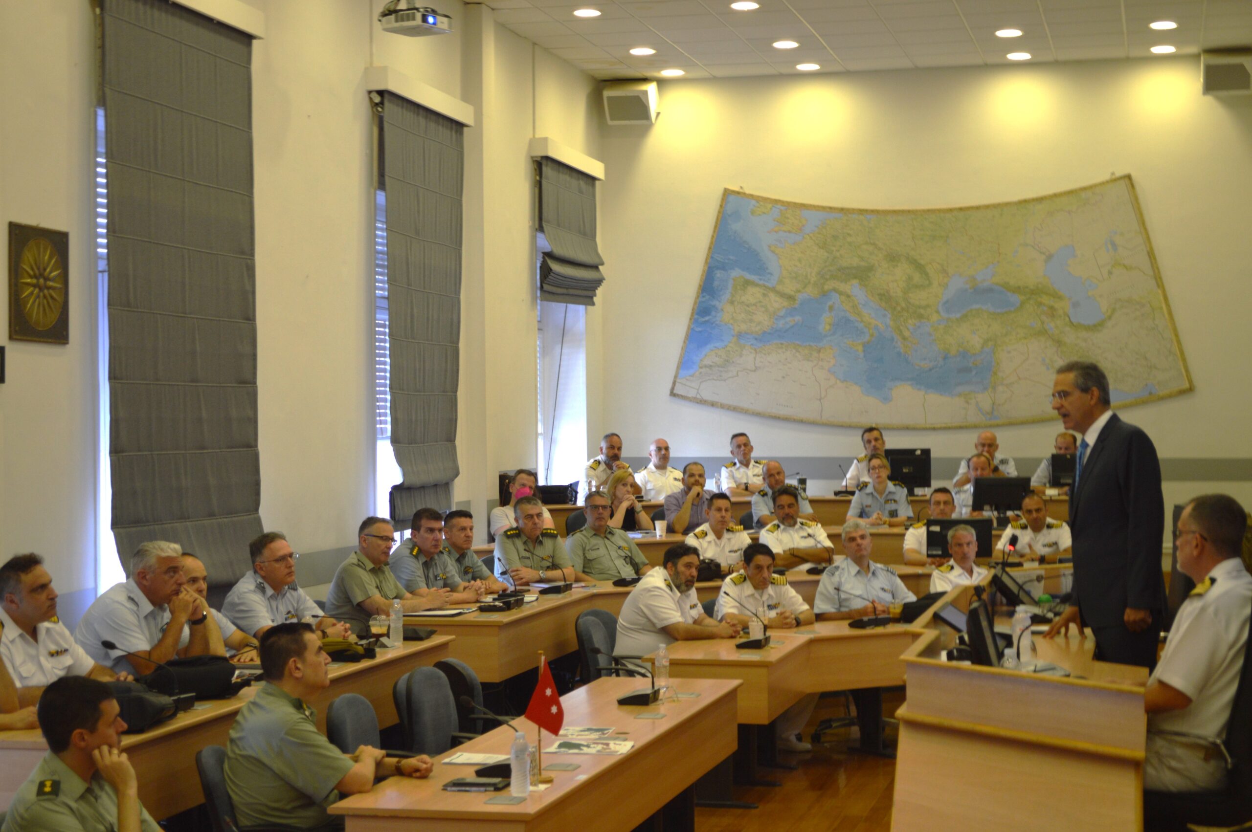 In the context of the 14th Distance Learning Course, Crisis Management training (including Crisis Management Exercise “ODYSSEIA”) was held at the Hellenic National Defence College’s (HNDC) premises, from 19 to 21 June 24 and from 26 to 28 June 24, by HNDC’s professors and staff. Furthermore, a lecture was given by the Professor of International Law and Foreign Policy, at Panteion University and member of the Hellenic Parliament, Dr. Angelos Syrigos, on “Greece – Turkey – Cyprus in the Aegean and Eastern Mediterranean”.