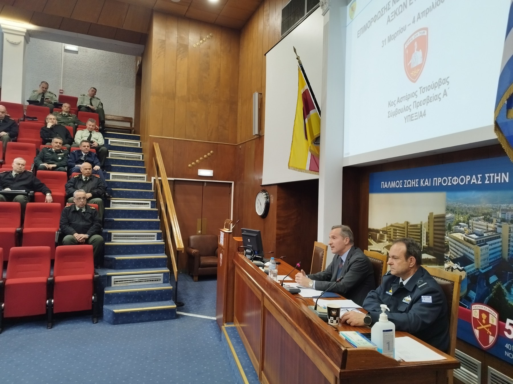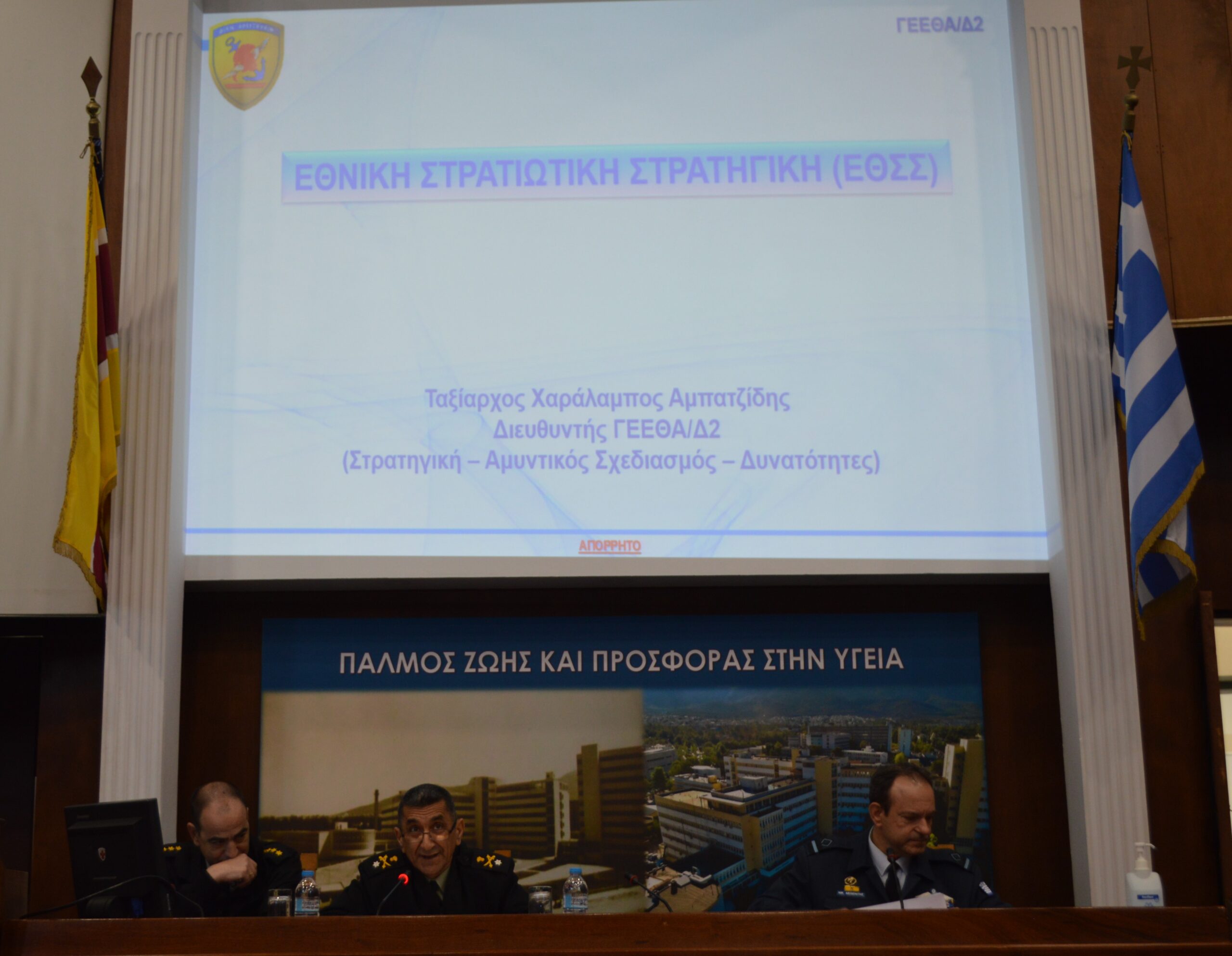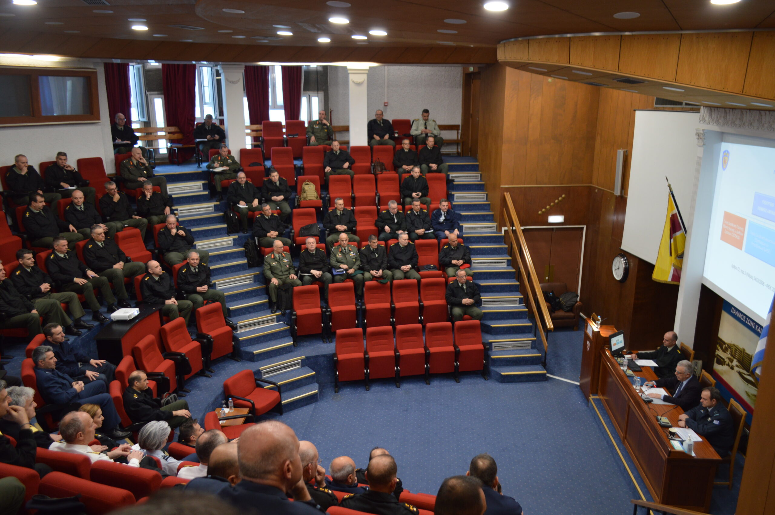 At the beginning of the seminar, HNDC Deputy Commander, Rear Admiral (ENG) Vasileios Vasilogiannakopoulos HN, welcomed the flag Officers and congratulated them on their promotion, followed by a greeting from Director of the Diplomatic Academy.