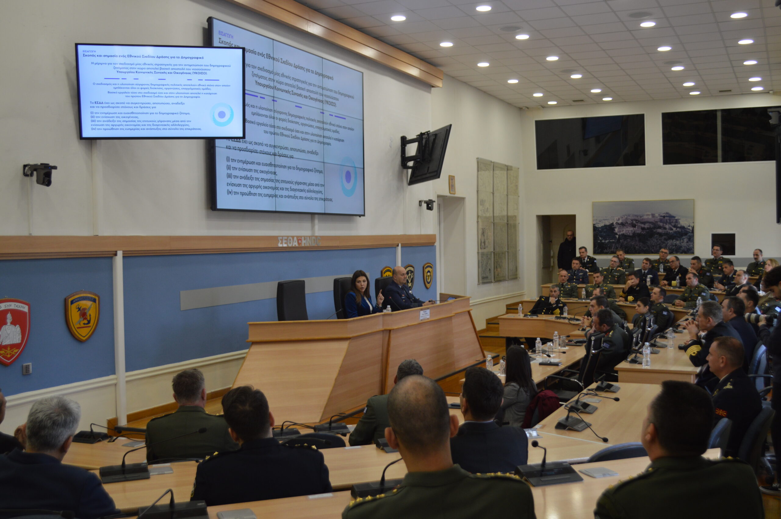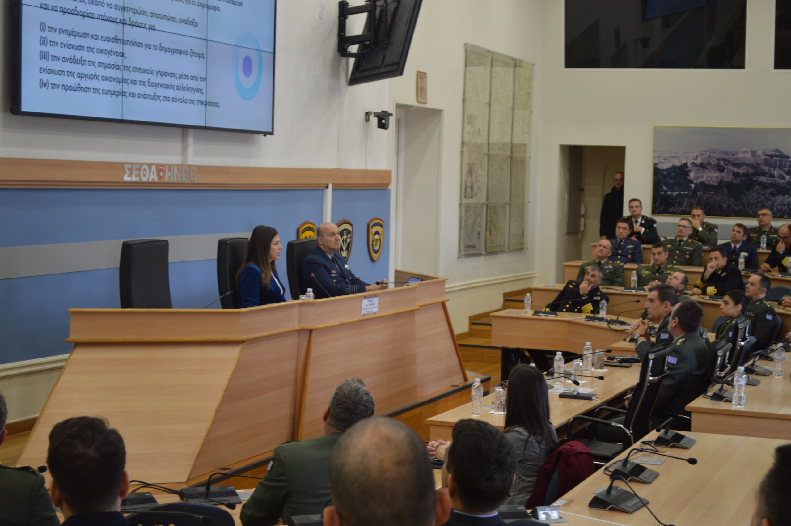 On Friday 24 Jan 2025, the Μinister of Social Cohesion and Family Affairs, Mrs. Sofia Zacharaki, visited the Hellenic National Defense College, where she gave a lecture to the students of the 77th Resident Course, on “Demographic Issue: Α National Challenge”.