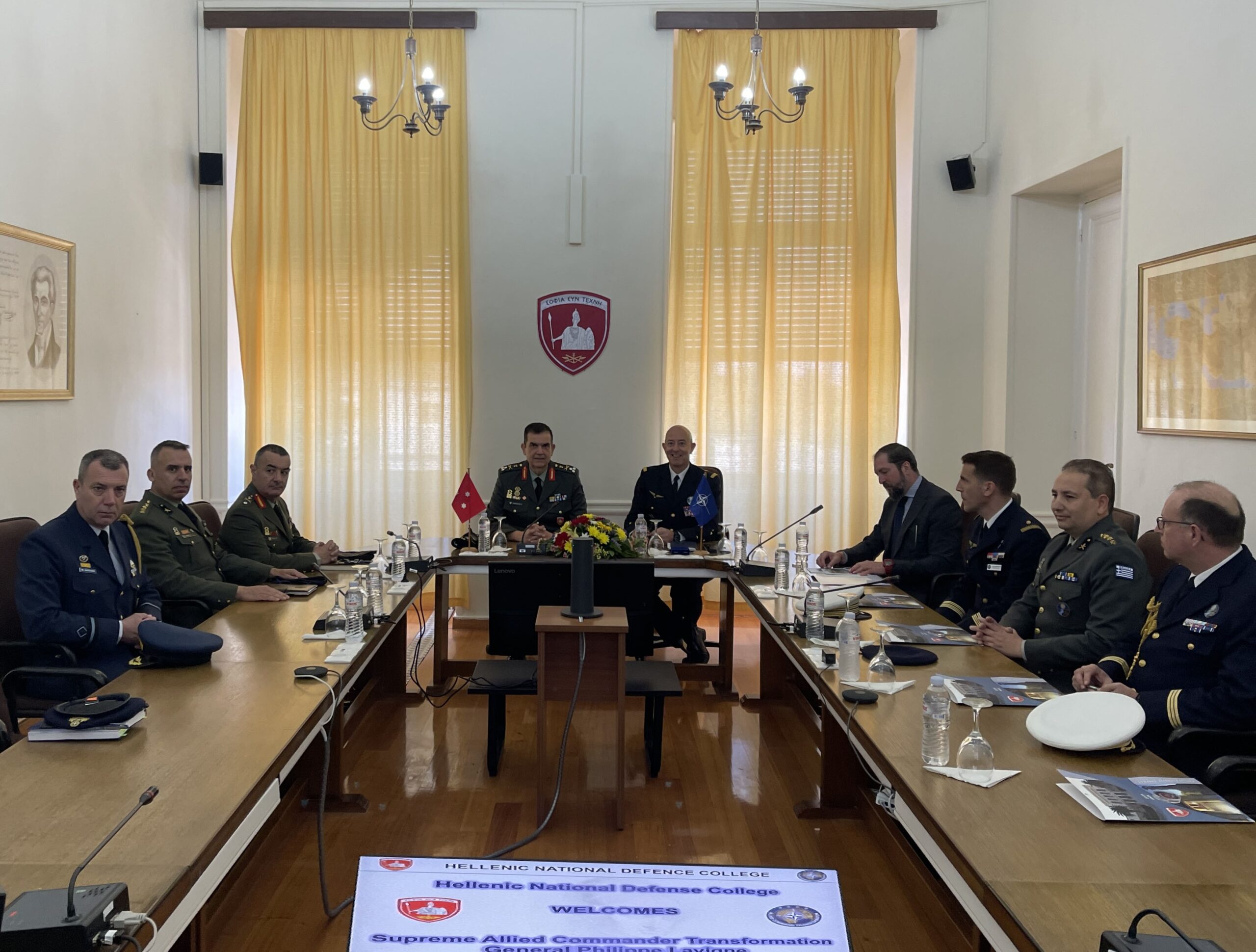 On Tuesday 12 March 2024, Supreme Allied Commander Transformation (SACT) of NATO, General Philippe Lavigne, visited the Hellenic National Defence College. He has been welcomed by the Commandant of the College, Lieutenant General Athanasios Sardellis, and briefed on the organization, mission, and education program of the College. Subsequently, General Philippe Lavigne delivered a speech to the students regarding NATO’s transformation and Alliance’s future challenges.
