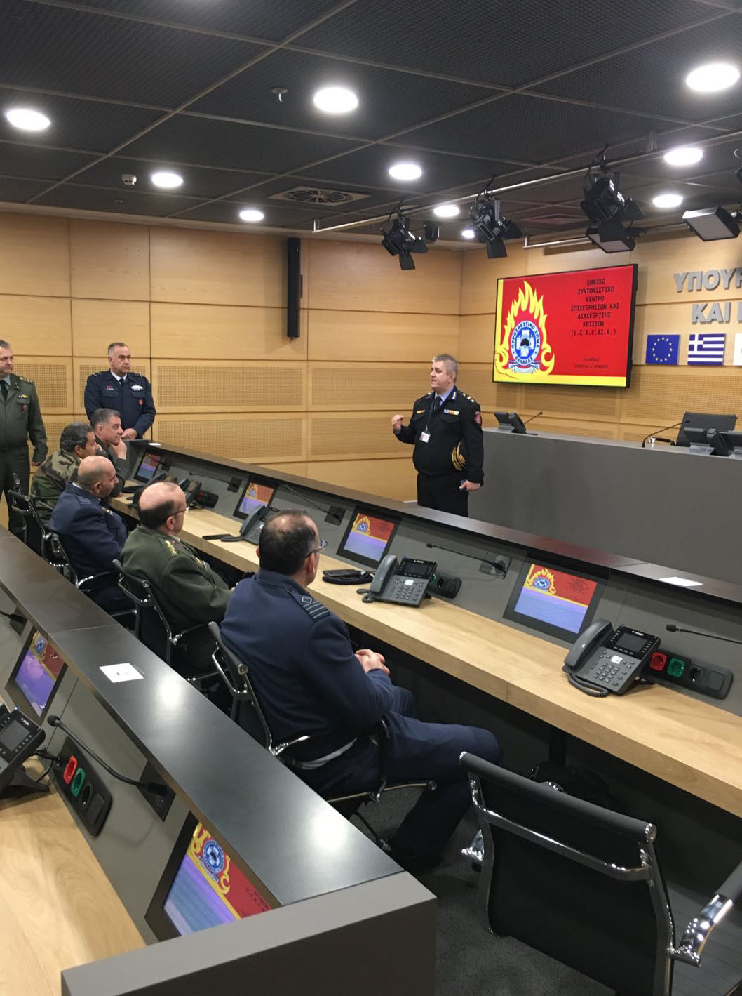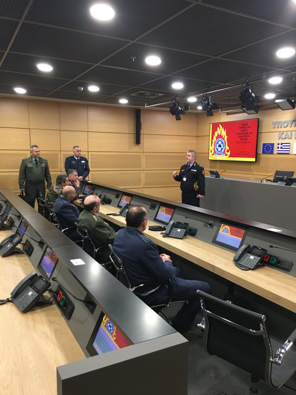 On Wednesday 6 March 2024, students of the Hellenic National Defence College visited the National Crisis Management Coordination Center “ESKEDIK” of the Ministry of Civil Protection & Climate Crisis. During the visit, students were briefed on the Center’s mission, organization and work.